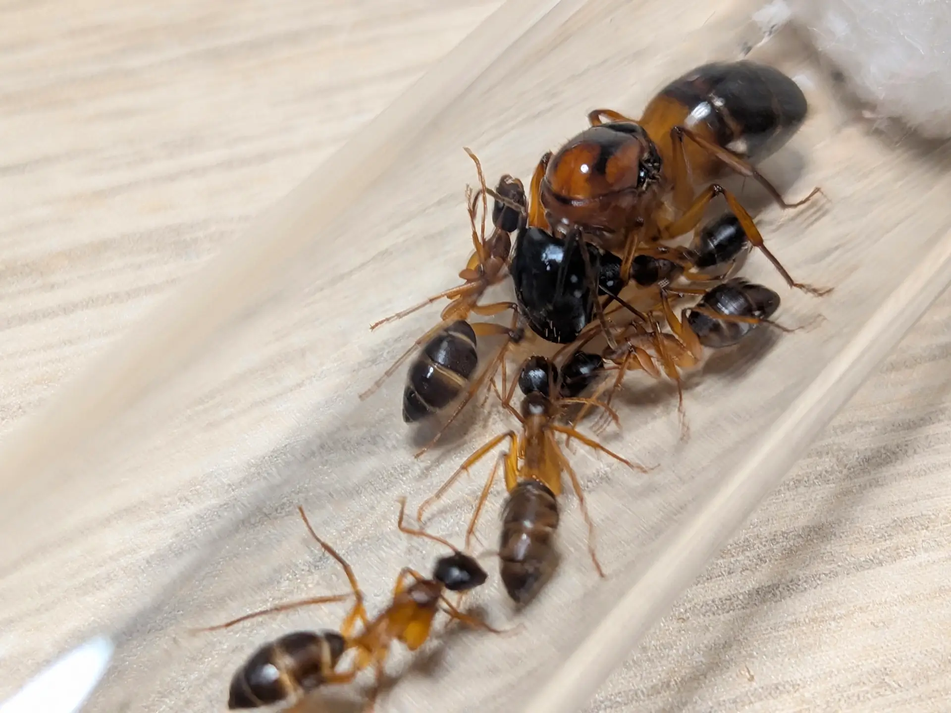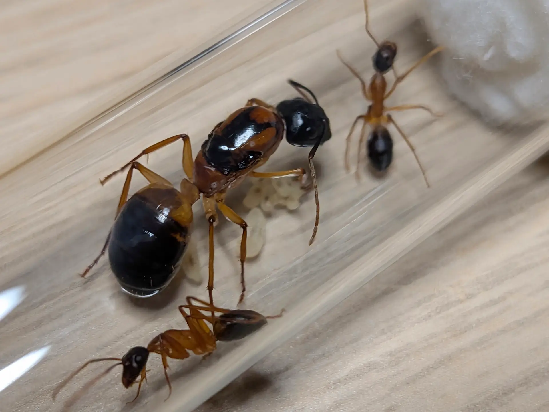 The Camponotus consobrinus colonies and queens we sell are all guaranteed 100% alive arrival, with a healthy brood and a clean tube.